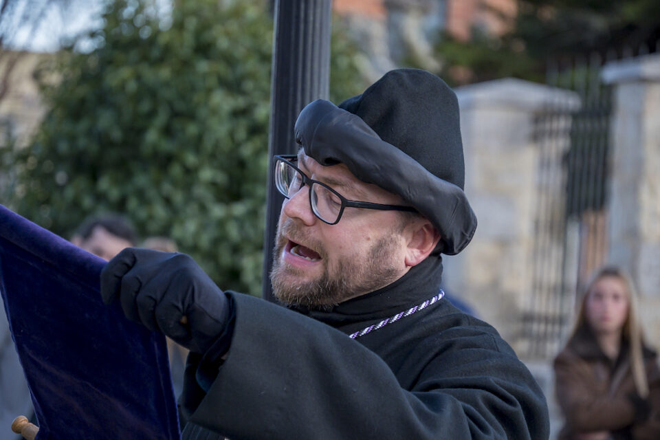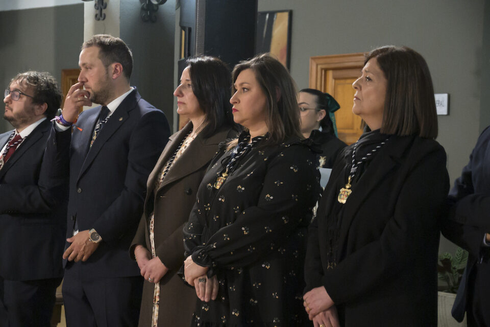 El pregonero también hizo una llamada directa a los cofrades y vecinos para vivir estos días con autenticidad, evitando que la fe se quede en lo superficial o en lo puntual. Y es que «no podemos gritar ‘Hosanna’ estos días y ‘Crucifícalo’ el resto del año», afirmó, en una de las frases más contundentes de la noche.