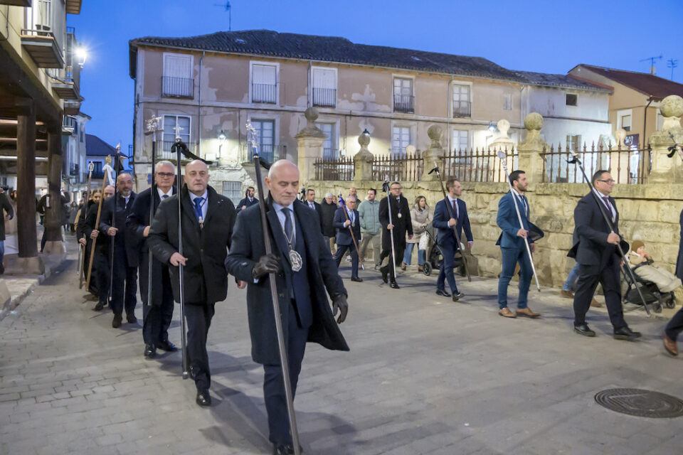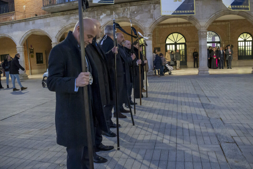 En un discurso trufado de recuerdos personales, evocó sus vínculos con Tierra de Campos – de Meneses, con fuertes vínculos en Villerías, Valdenebro y Montealegre- y sus primeras visitas a Rioseco, donde ya percibía esa mezcla única de austeridad, devoción y espectáculo que sigue definiendo su Semana Santa. Argüello también quiso poner el acento en el mensaje central de la fe cristiana, recordando que la cruz no puede entenderse sin la esperanza de la resurrección: «sin resurrección, vana es nuestra fe», señaló, e invitó a no quedarse solo en el dolor, sino a mirar hacia la vida nueva.