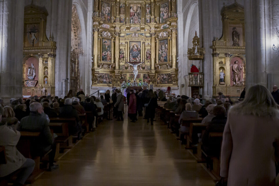 La iglesia de Santa María de Medina de Rioseco se llenó hasta la bandera este sábado para escuchar un pregón cargado de emoción, memoria y profundidad espiritual de la mano de Luis Javier Argüello García, quien ofreció una reflexión que fue mucho más allá del anuncio de la Semana Santa para adentrarse en el sentido de la fe, la tradición y la vida comunitaria.