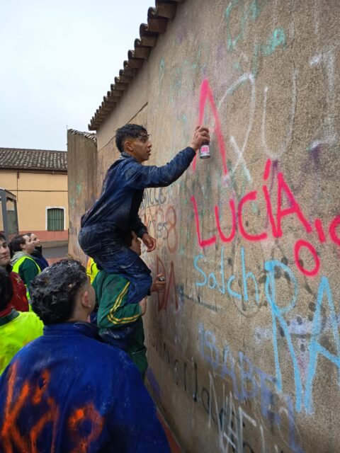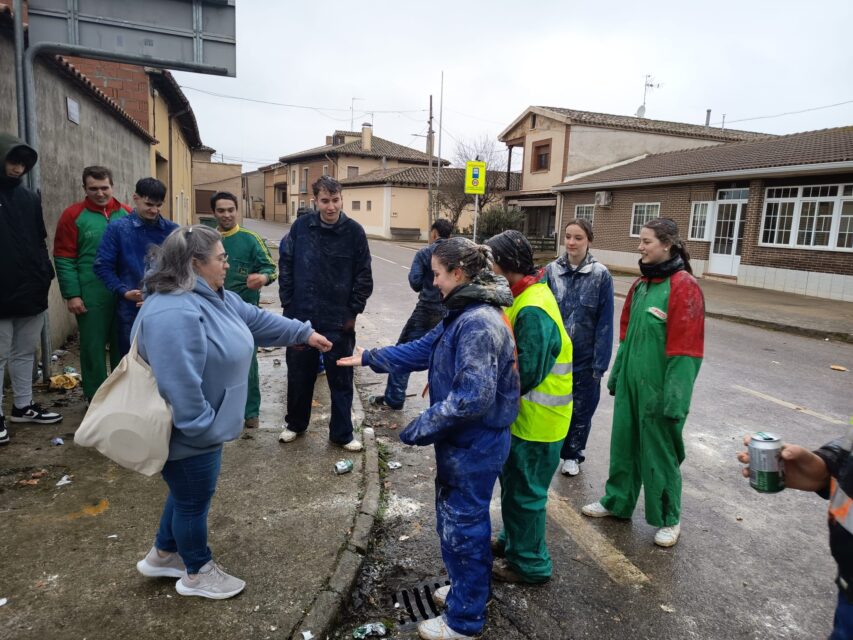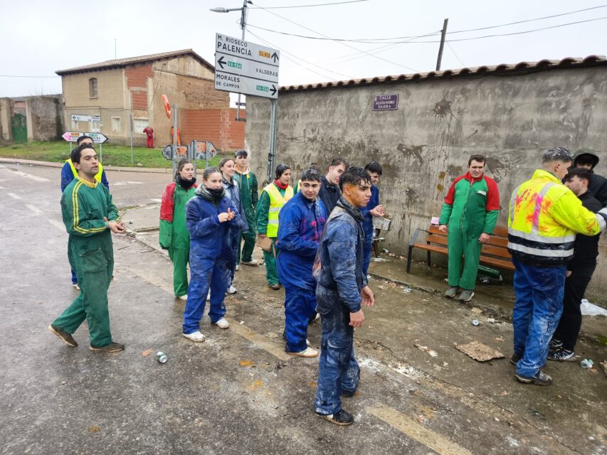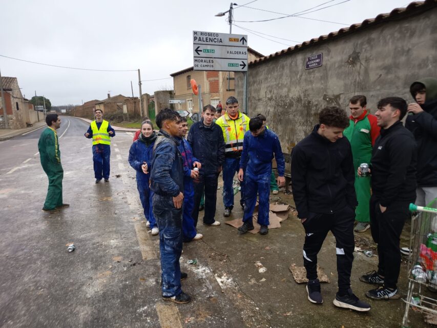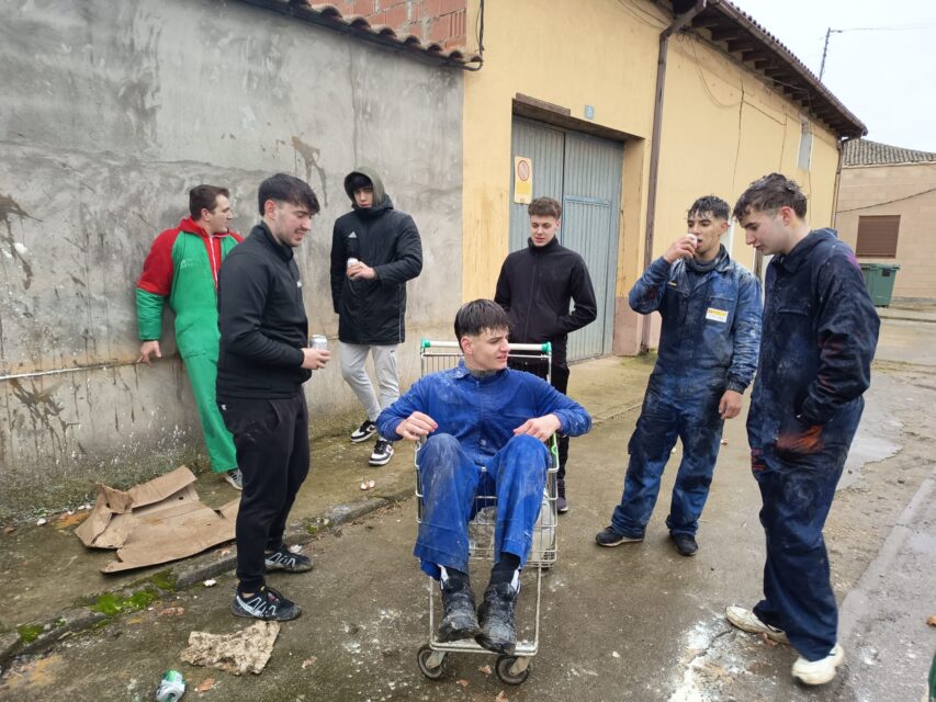 Como cada año, los jóvenes llevan cerveza, harina y huevos y en los cruces de la localidad paran a los coches para pedir una propina. Ya al mediodía, y después de pintar una de las paredes del pueblo con sus nombres, recorrieron los bares junto con sus amigos e invitados a tomar el vermú.