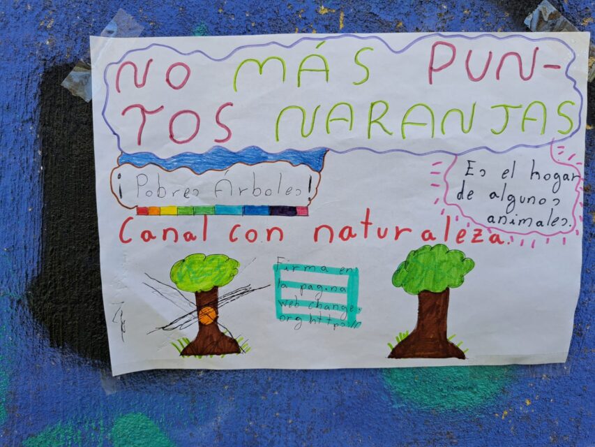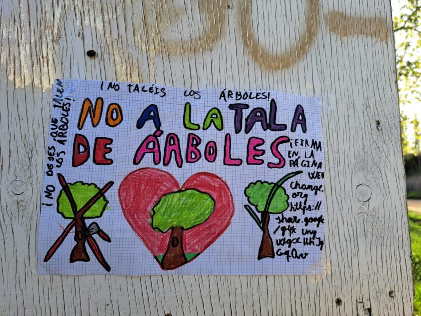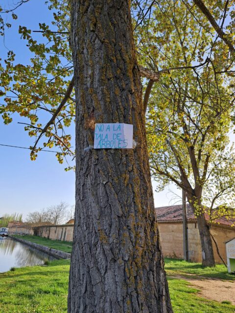 La contestación social no se ha hecho esperar y ha adquirido un marcado carácter intergeneracional. En Medina de Rioseco, vecinos de todas las edades -desde niños hasta personas mayores- se han movilizaron de forma espontánea para defender el arbolado del Canal de Castilla. Armados con carteles hechos a mano, muchos de ellos se acercaron a los árboles marcados para colgar mensajes como «me quieren cortar» o «no más puntos naranjas», en una acción simbólica que refleja tanto el arraigo emocional con el entorno como la preocupación colectiva por la posible transformación del paisaje tradicional del canal.